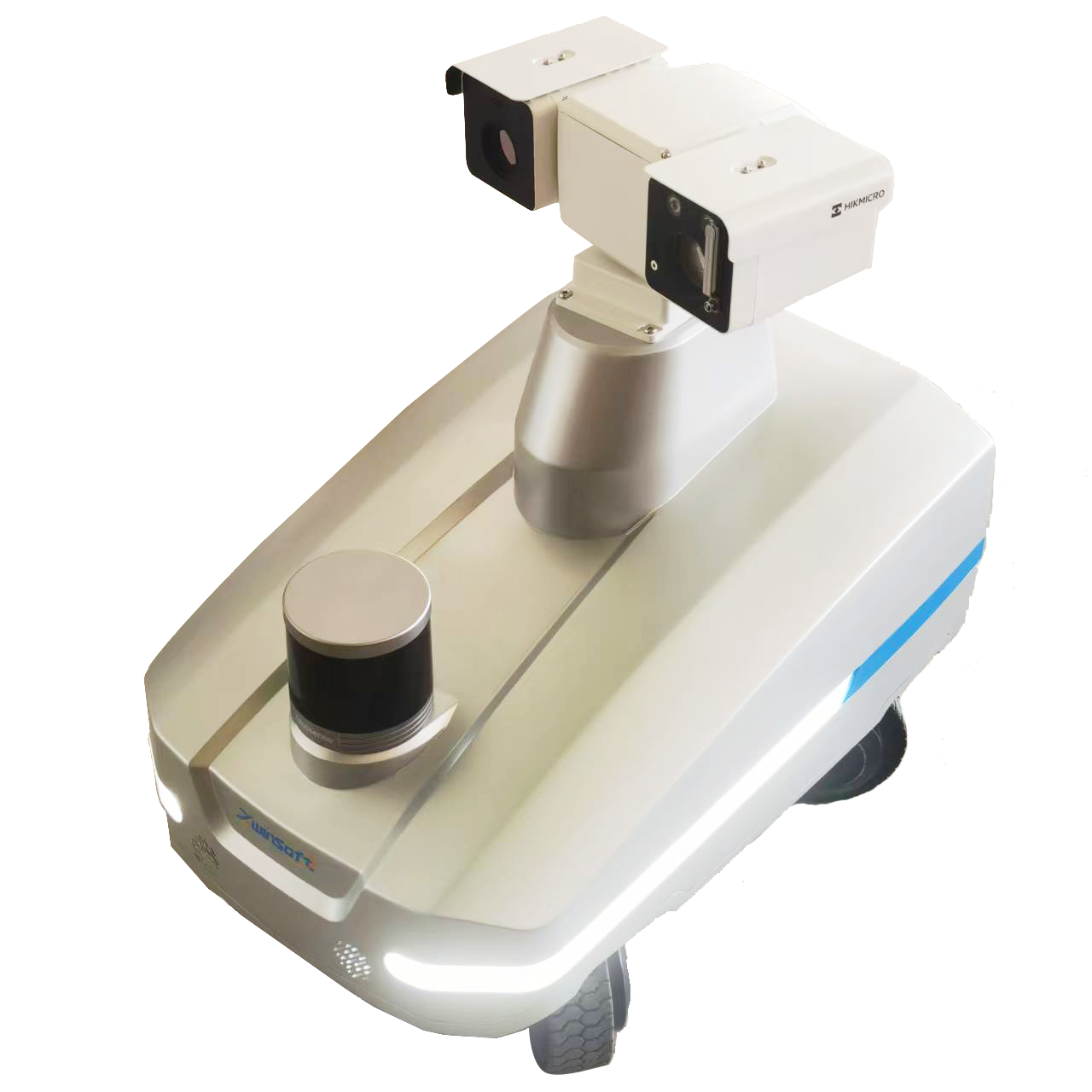The wheeled inspection robot system mainly consists of the wheeled inspection robot,software platform, power supply platform, and communication platform. Through the central management platform deployed at the management center, it can manage and control robots to perform inspection tasks online in real time. At the same time, the inspection status and results can be transmitted to the cloud server via a desktop controller and can be sent to on-site management personnel anytime through a mobile client. Inspection reports and alarm information are received in a timely manner. The covered communication network enables real-time data sharing of robot inspection images and results with the integrated management department. Each robot’s status is monitored and managed remotely.